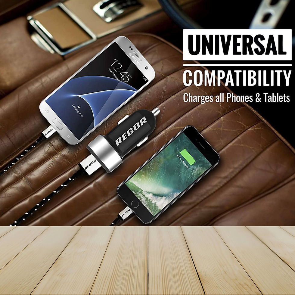 Regor [4.8Amp - 2 Port] High Speed Car Charger for All Smartphones & Tablets